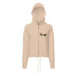 Oversized, cropped, zipped hoodie. Zip to centre. Drawstring tie to waist. Kangaroo pockets to front. Contains recycled polyester fabric. The product contains no branded neck or waist label. Removable kimble or looped garment tags. The inner seam label holds important product information on one label with a second label containing brand information which can be cut-away. Oeko-Tex fabric only, WRAP and Amfori BSCI certified.